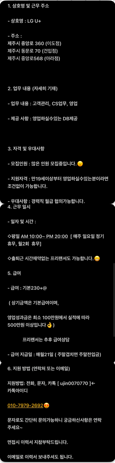 어려운일 찾지 마시구 여기서 일해보세요!! 페이지 정보 작성자 읽OOO요 작성일24-11-21 19:22 조회2,832회 연락처 010-7979-2692 급여 월급 : 230+150 관련링크 본문 일합시다! 주소 : 제주특별자치도 제주시 중앙로 360 1 이전글 다음글 목록