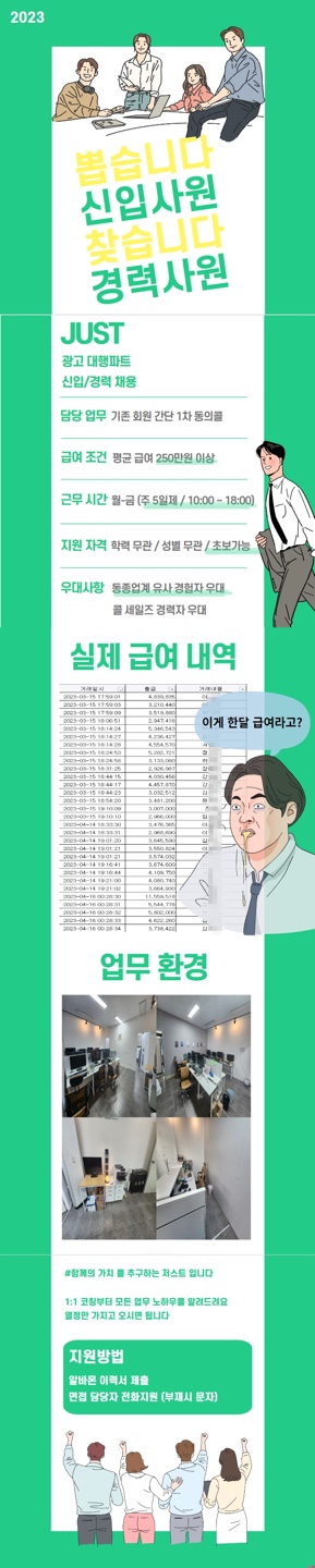 * '현재 주 5일 10시-18시 근무직원 평균 급여 350만원!!!!'
