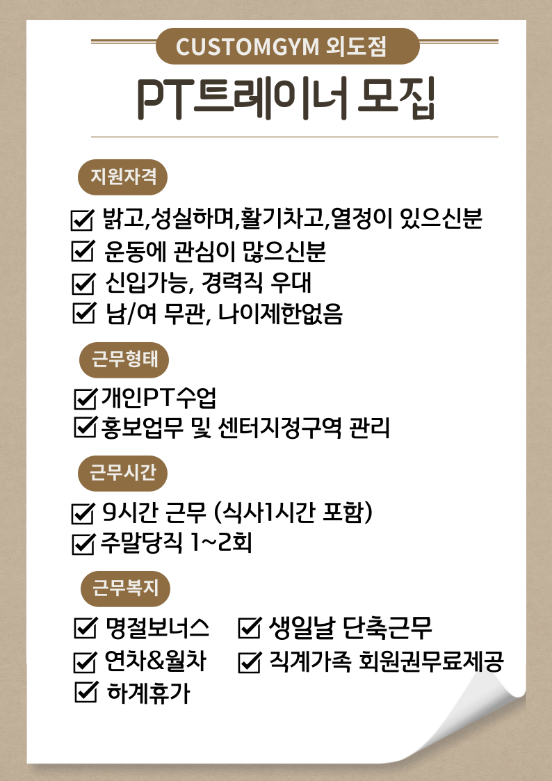 커스텀짐 외도점에서 함께 근무할 pt선생님을 모집합니다!!!! 페이지 정보 작성자 커OOOOO점 작성일24-08-09 09:26 조회4,010회 연락처 010-9838-3254 급여 협의 : 협의 관련링크 본문 저희 커스텀짐 외도점에서 함께 근무하실 pt선생님 언제든지 환영합니다 :) 문의연락주세요 ^^ 주소 : 제주특별자치도 제주시 우령남길 12 1~2층 이전글 다음글 목록