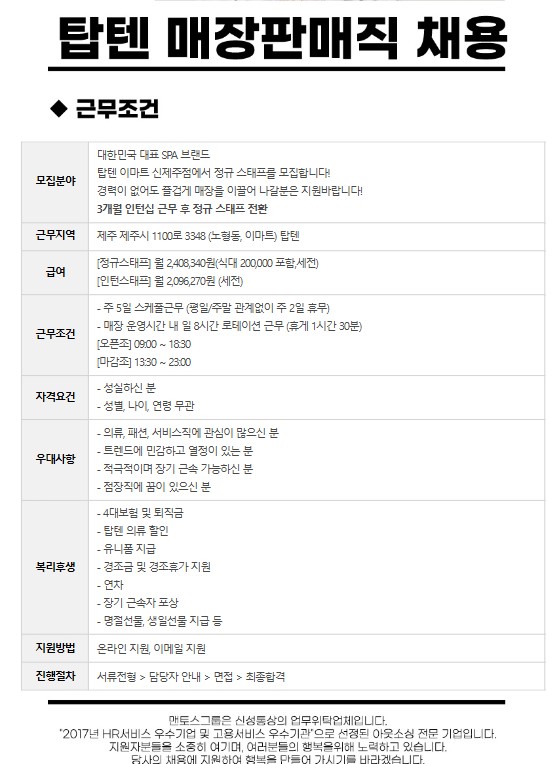 탑텐 이마트 신제주점 정규스태프 채용