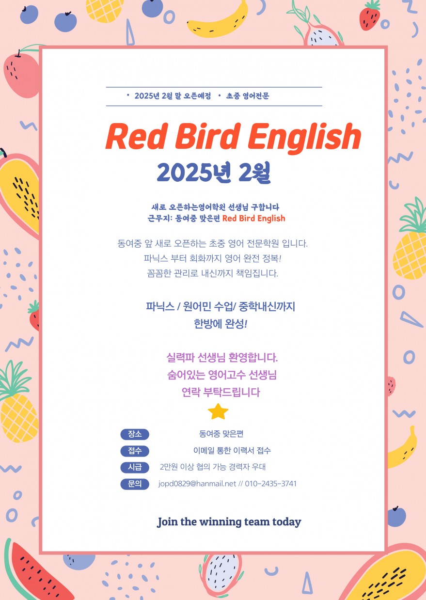 동여중앞 [영어학원] 선생님 구해요