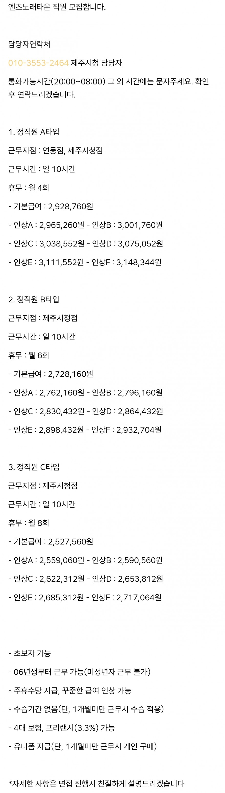 - 06년생부터 근무 가능(미성년자 근무 불가)