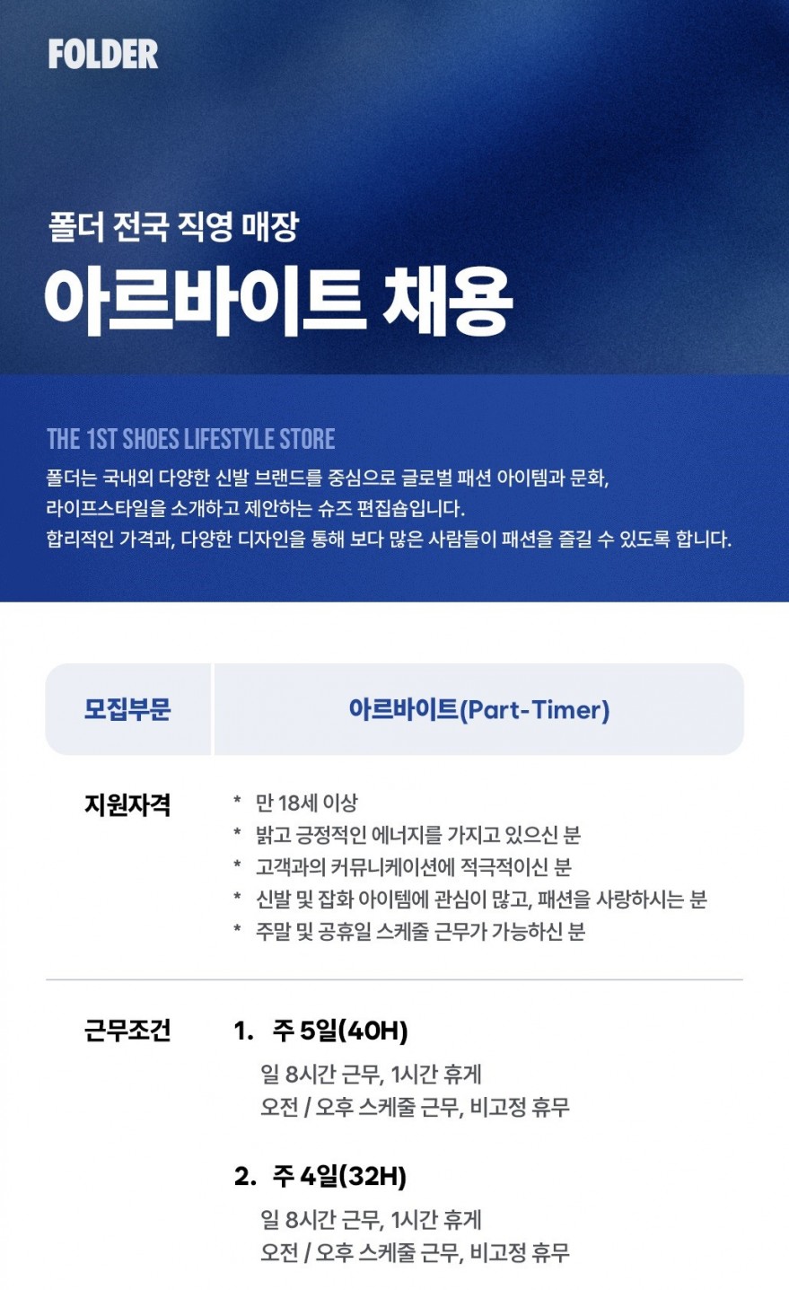 [폴더 신제주점] 주 4/5일 크루를 모집합니다.