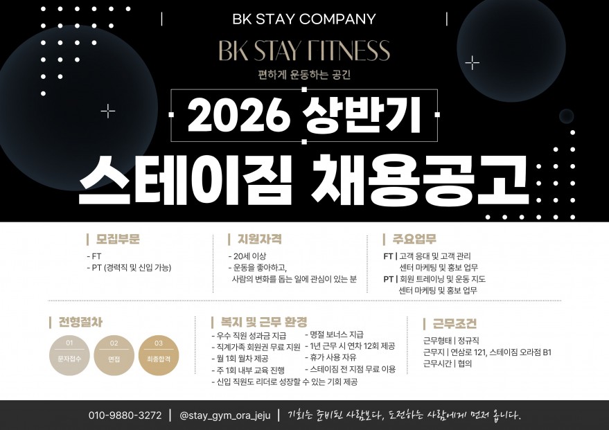 BK 스테이컴퍼니 스테이짐 동문점(1호점) 및 오라점(2호점) 채용 공고
