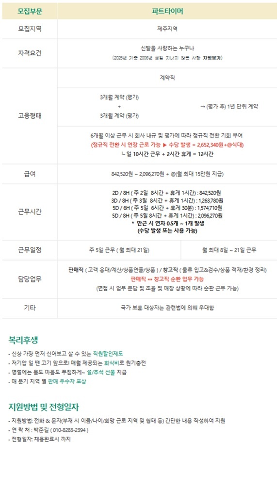 ABC마트 GS 신제주연동점 단시간근로자 채용 페이지 정보 작성자 꽃OOO돌 작성일25-08-16 11:07 조회510회 연락처 010-8283-2394 급여 월급 : 2,096,270 관련링크 본문 .. 주소 : 제주특별자치도 제주시 신광로 58 삼덕프라자 제주시 신광로 58 1층 ABC마트 이전글 다음글 목록
