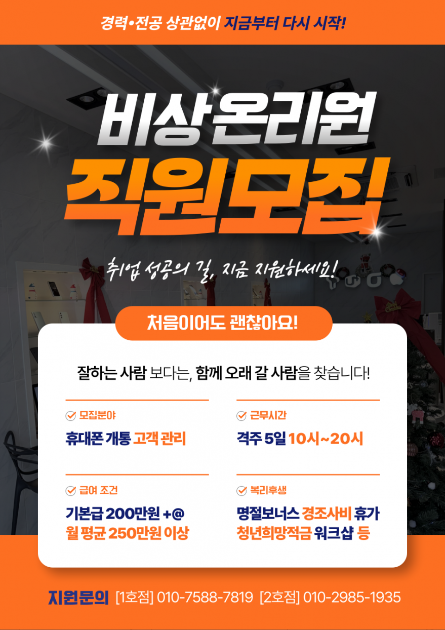 통신3사휴대폰⭐️비상!OnlyOne⭐️직원추가모집!초보자가능^^ 페이지 정보 작성자 일OO손 작성일25-12-31 16:06 조회123회 연락처 010-7588-7819 급여 월급 : 250만원 이상 관련링크 본문 - 주소 : 제주 제주시 월랑로 8길 1 이전글 다음글 목록