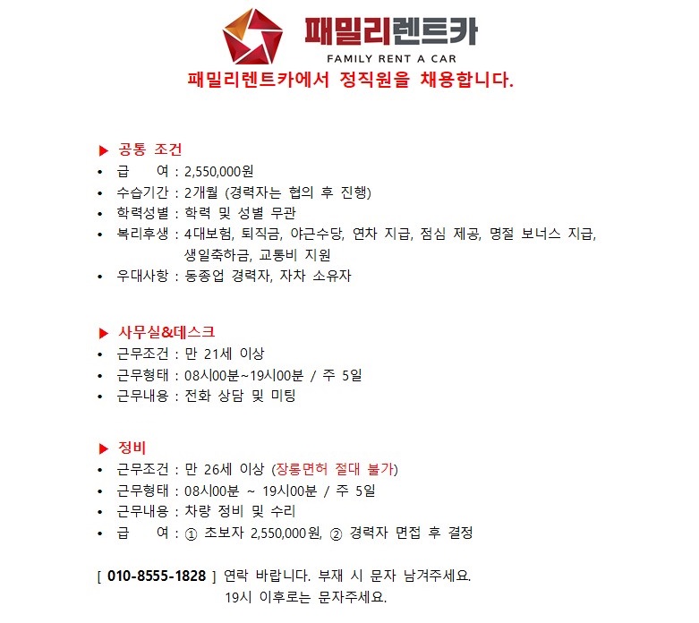 패밀리렌트카 사무실&데스크 정직원 구인 페이지 정보 작성자 패OOOO카 작성일25-07-30 08:36 조회771회 연락처 010-8555-1828 급여 월급 : 255만 관련링크 본문 연락주세요 주소 : 제주특별자치도 제주시 제성1길 67 이전글 다음글 목록