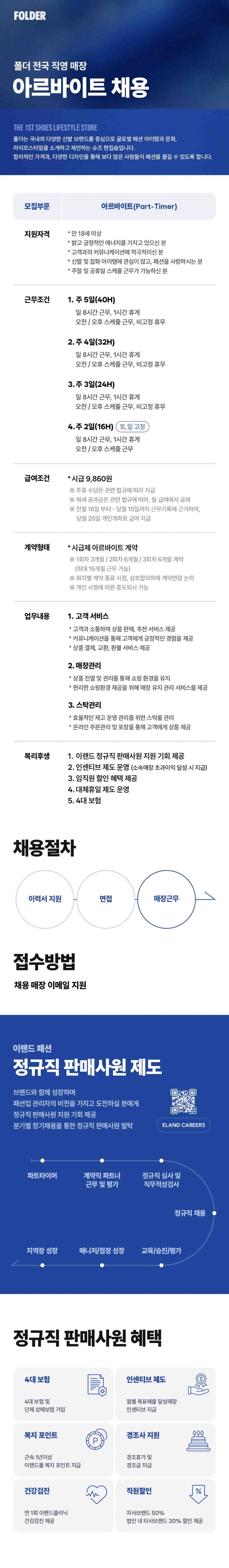 [폴더 제주점] 주5일(8시간)근무 가능한 크루 모집 합니다.