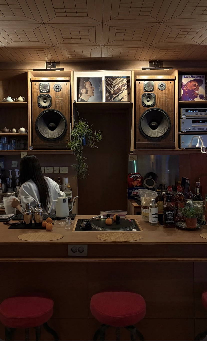저녁에는 커피, 술, 간단한 음식을 판매하는 매장입니다.