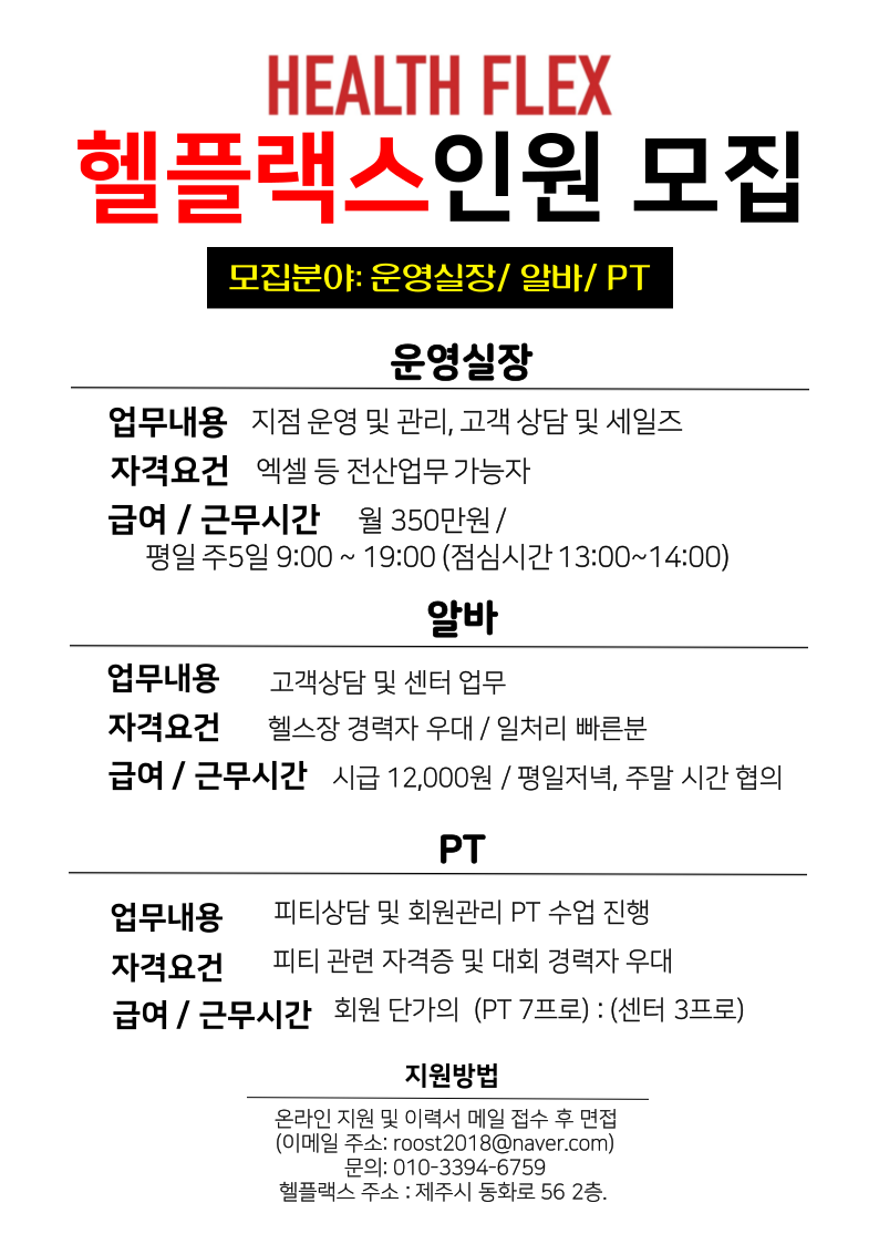 ※ 업무내용 : 블로그 작성 / 회원응대 및 상담업무 / 센타청결관리 / 오픈 및 마감정리 업무