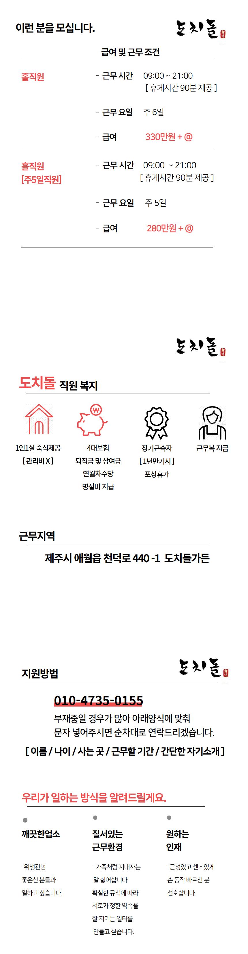 [숙식제공/1인1실]_280,330만원_홀직원_모집 페이지 정보 작성자 gOOOOOOOOO8 작성일25-09-29 08:32 조회185회 연락처 010-4735-0155 급여 월급 : 330만원 관련링크 본문 . 주소 : 천덕로440-1 이전글 다음글 목록