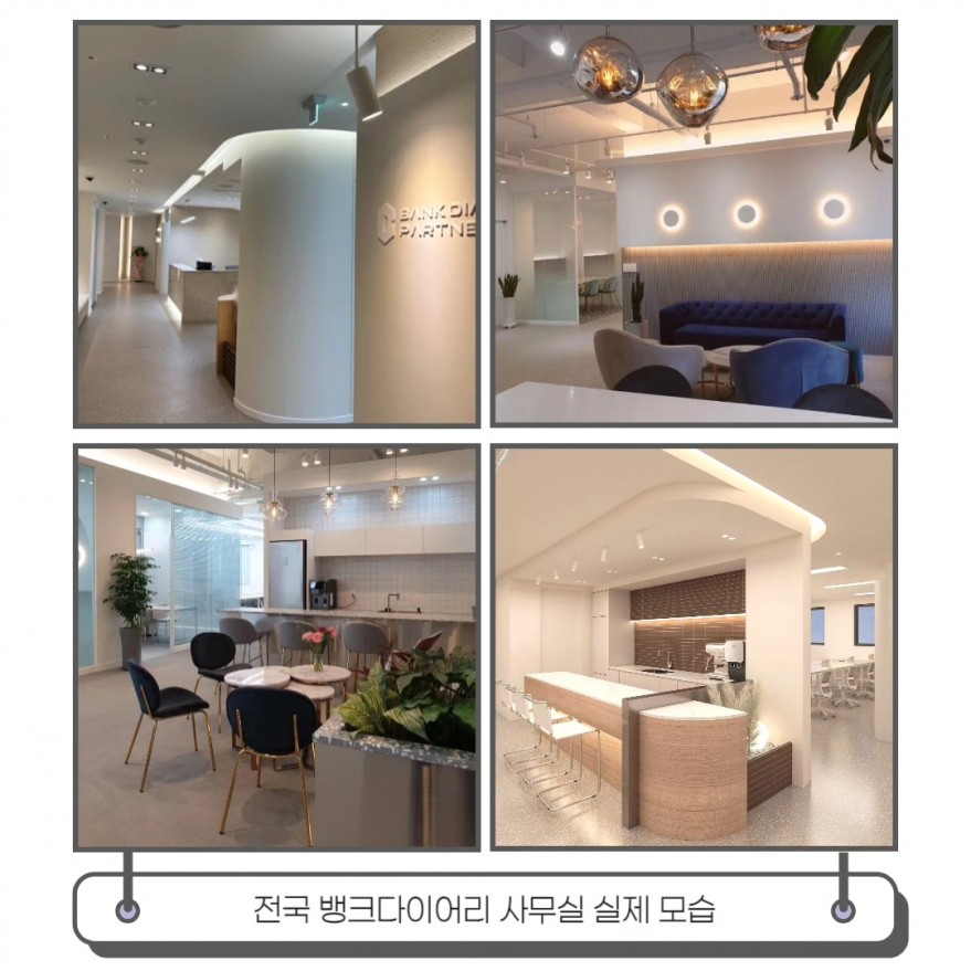 뱅크다이어리 전용 어플과 전국 어디서나 상담을 할 수 있는 카페같은 사무실을 지원합니다.