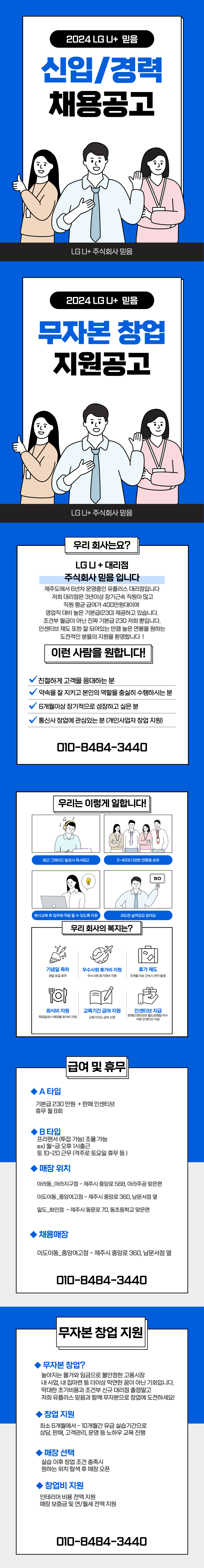 유플러스 믿음 신입/경력 직원채용 및 무자본 창업지원 공고 페이지 정보 작성자 먹물 작성일24-09-04 19:33 조회4,495회 연락처 010-8484-3440 급여 월급 : 230+@ 관련링크 본문 유플러스 믿음 대리점에서 신입/경력 직원 및 예비사장님을 모집합니다. 채용인원 00 모집기간 채용시까지 많은 지원 바랍니다. 주소 : 제주특별자치도 제주시 중앙로 360 1층 이전글 다음글 목록