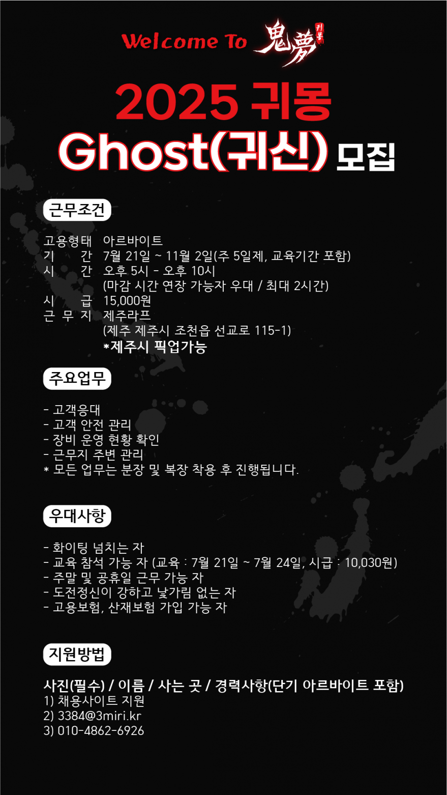* 모든 업무는 분장 및 복장 착용 후 진행됩니다.