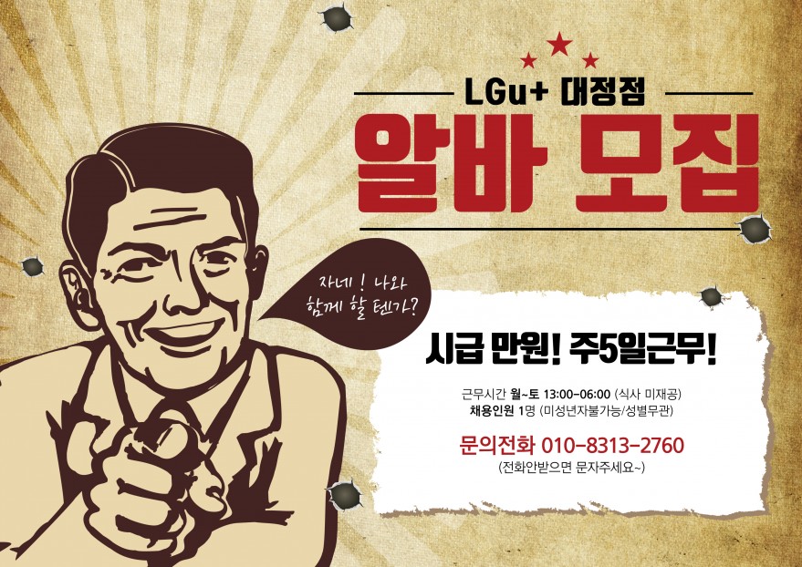 - 근무장소 : 서귀포시 하모상가로 27(대정) 유플러스 대리점