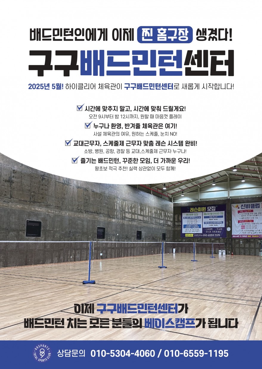 구구배드민턴센터에서 체육관 홍보 및 인스타 숏폼 제작/관리, 블로그 관리 직원 구합니다!