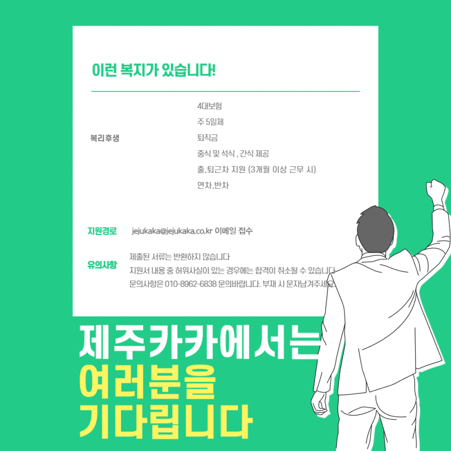 제주카카에서 직원구합니다. 페이지 정보 작성자 jOOOOOOOO3 작성일25-04-17 12:16 조회1,441회 연락처 010-8962-6838 급여 월급 : 2,700,000원 관련링크 본문 . 주소 : 제주특별자치도 제주시 도령로 171-1 이전글 다음글 목록