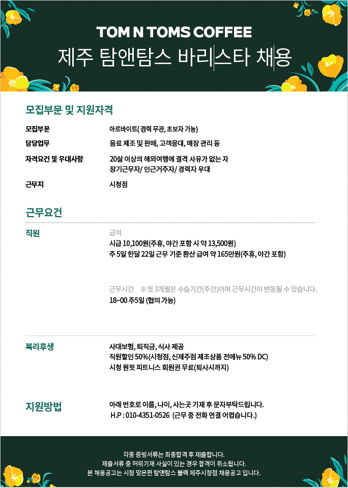제주 시청 탐앤탐스 알바 구인 페이지 정보 작성자 TOOOOOOS 작성일25-09-20 11:16 조회311회 연락처 010-4351-0526 급여 시급 : 10100 관련링크 본문 사진 참조 부탁드립니다.!! 주소 : 제주특별자치도 제주시 중앙로 236 문산빌딩 1층 이전글 다음글 목록