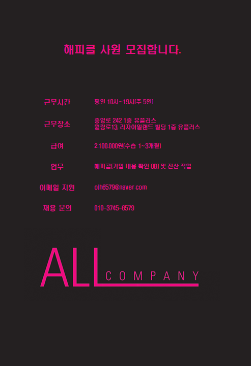 평일 직원 구해요~ 페이지 정보 작성자 다OOOO1 작성일25-03-28 12:26 조회1,412회 연락처 010-3745-6579 급여 월급 : 2100000 관련링크 본문 평일에 근무하실 직원 한분 모집합니당! 편히 문의주세용 주소 : 제주특별자치도 제주시 중앙로 242 1층 이전글 다음글 목록