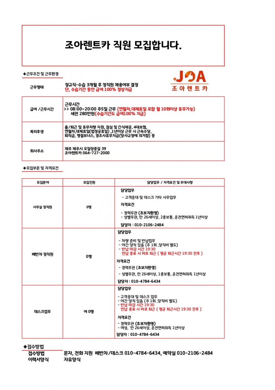 ⭐໒(◉ᴥ◉)७조아렌트카 / 예약실데스크배차 / 출퇴근휴무차량지원 페이지 정보 작성자 jOOOOa 작성일25-12-17 08:54 조회264회 연락처 010-4784-6434 급여 월급 : 280만원 관련링크 본문 주소 : 제주특별자치도 제주시 오일장중길 39 조아렌트카 이전글 다음글 목록