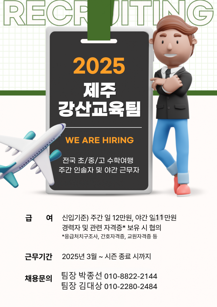 /중/고 전국 수학여행 인솔 주간 및 야간근무자