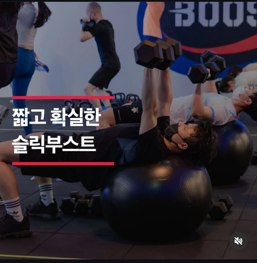 슬릭부스트는 그룹수업형태를 띄며 기능, 웨이트, 유산소, 인터벌, 서킷 등의 많은 운동을 적용한 진행하는 프로그램 입니다!
