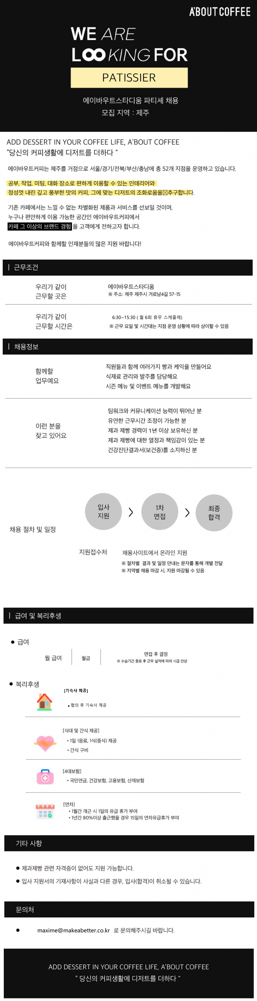 에이바우트커피 스타디움점 - 베이커리 파티쉐 구인 공고
