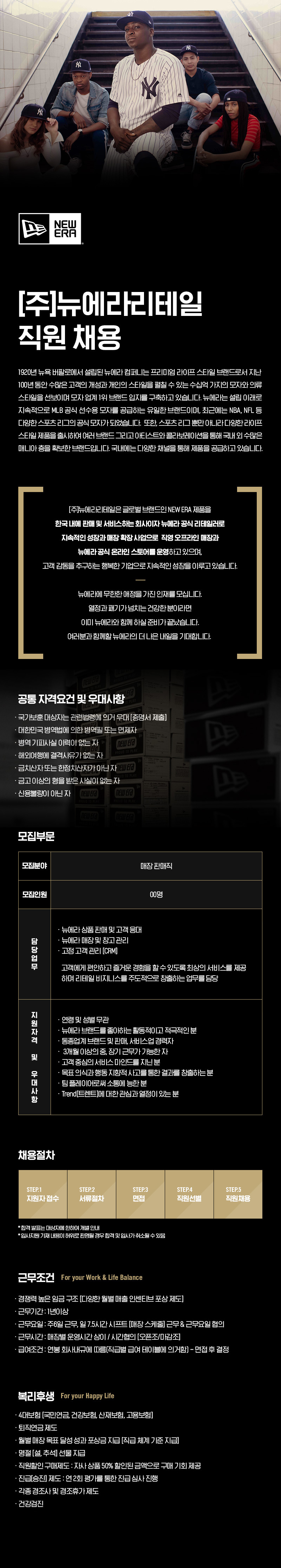 글로벌 브랜드 뉴에라 제주점 매장에서 함께 근무하실 직원분을 구합니다.