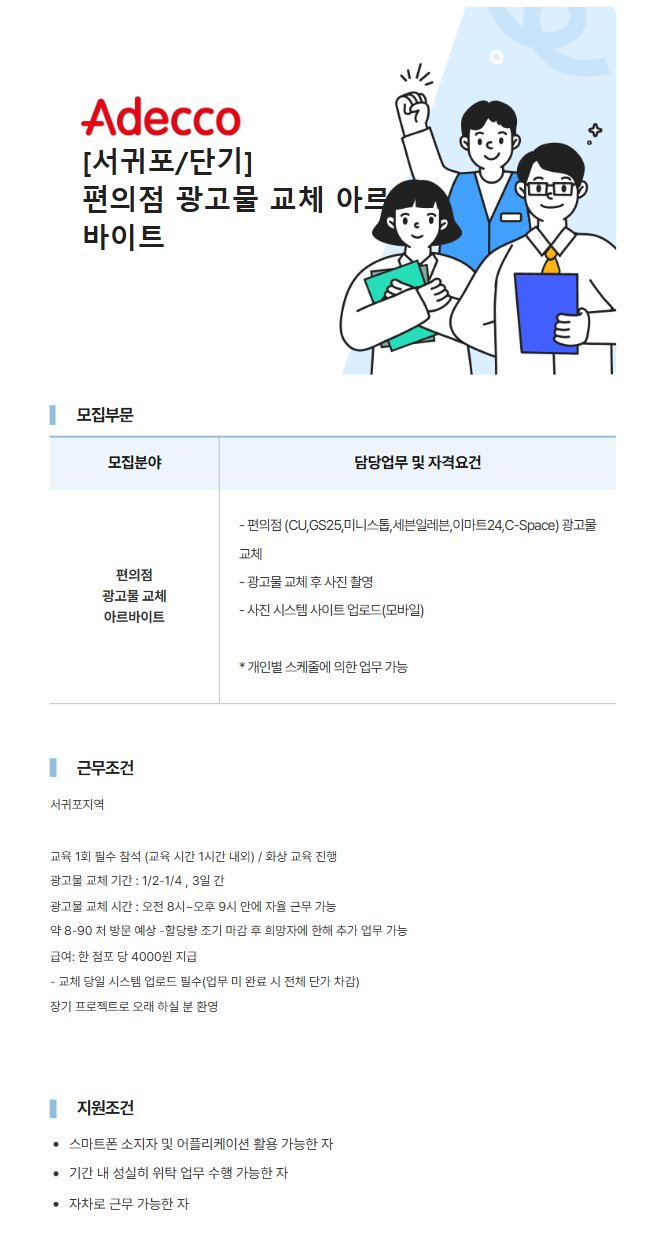 [서귀포/3일35만] 편의점 광고물 교체 단기 알바 페이지 정보 작성자 편OOOOOO체 작성일24-12-09 15:41 조회3,716회 연락처 010-7733-2775 급여 협의 : 건4000 관련링크 본문 빠른지원[성함/나이/거주지/이메일주소]자차 필수 주소 : 제주특별자치도 제주시 공항로 2 제주국제공항 이전글 다음글 목록