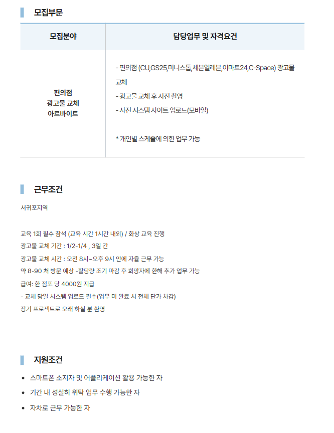 [단기/서귀포] 편의점 광고물 교체 페이지 정보 작성자 편OOOOOO체 작성일24-12-03 14:24 조회3,066회 연락처 010-7733-2775 급여 협의 : 건4000 관련링크 본문 [서귀포/3일] 편의점 광고물 교체 아르바이트 자차필수빠른 지원: 010-7733-2775로 문자 지원[ 성함/나이/거주지 ] 주소 : 제주특별자치도 제주시 공항로 2 제주국제공항 이전글 다음글 목록