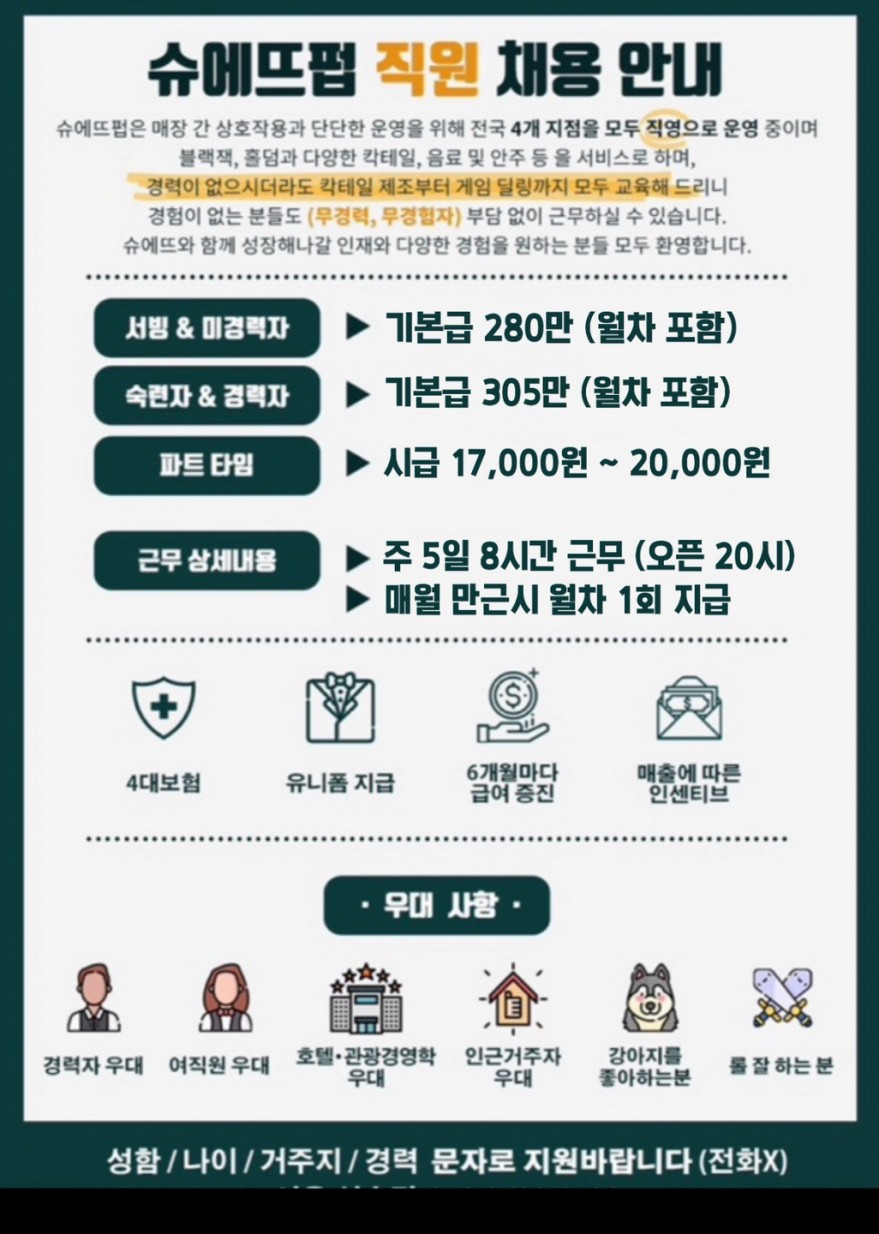 -4대보험 가능 / 매월 만근시 월차 1회 지급