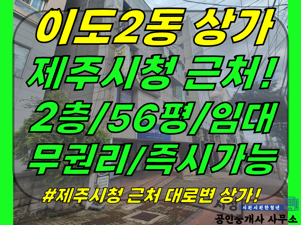 [ 제주시청 근처+6차선 대로변! 제주시 이도2동 상가 2층 임대(56평/무권리/분할임대 가능/즉시입주 가능) ]