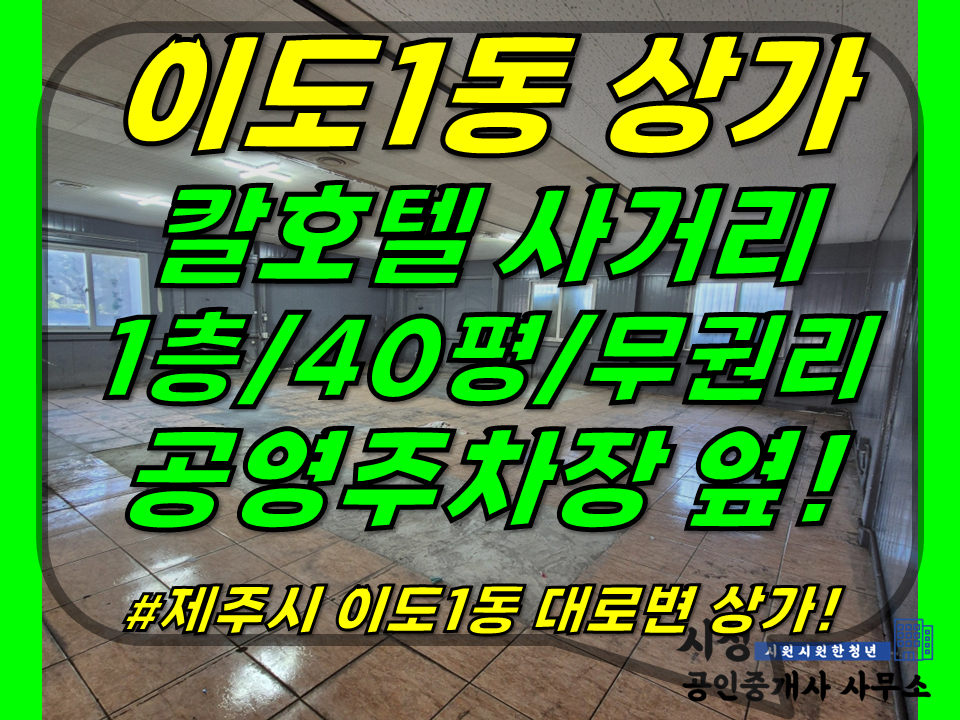 상가점포 | 상가1-436[ 칼호텔사거리 근처+무권리! 제주시 이도1동 상가 1층 임대(40평/음식점 가능/작업실-공방 추천/공영주차장 옆…