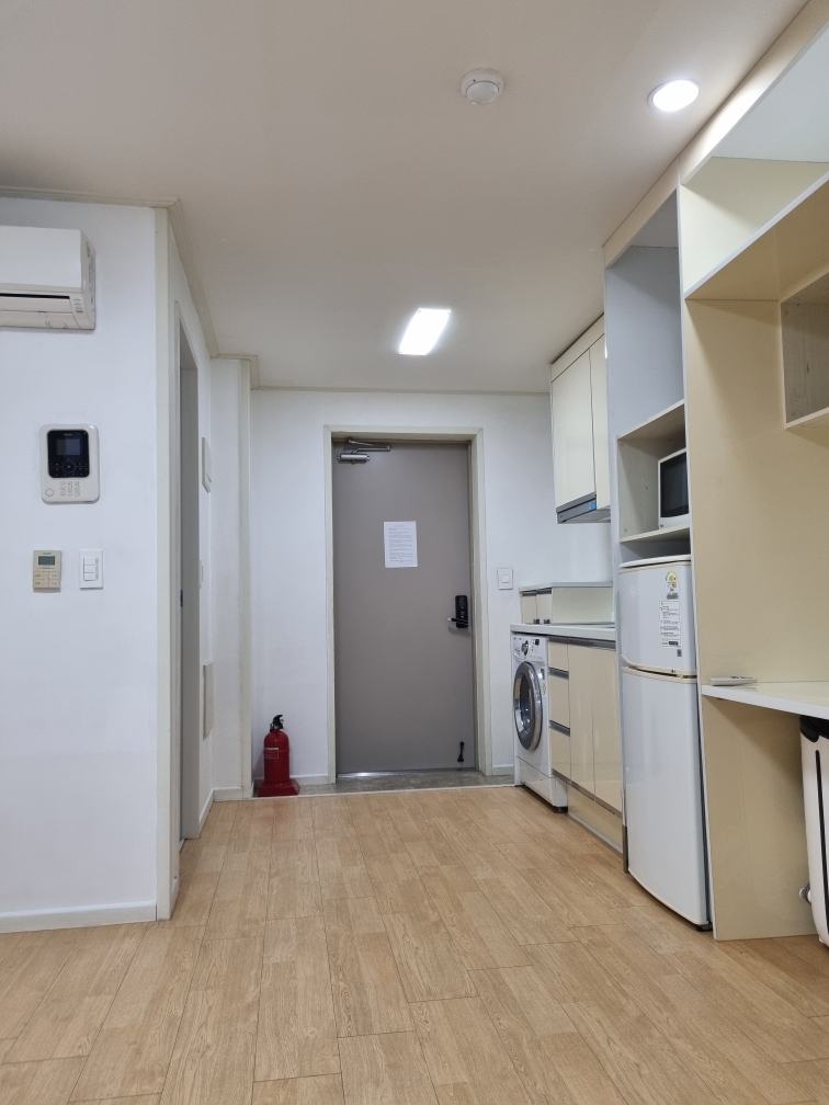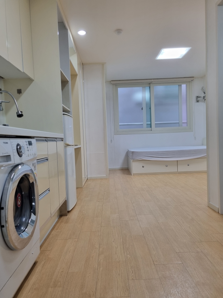 -옵션: 세탁기, 냉장고, 에어컨, 전자렌지, 책상, TV, 침대+매트리스, 옷장을 포함한 풀옵션, 제습기(여름철 빨래건조에도 탁월)