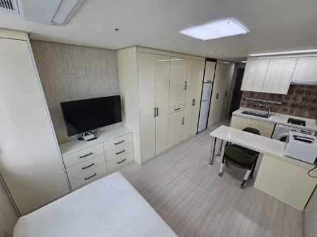 세탁기, 냉장고, 에어컨, 전자레인지, 인덕션, 침대, TV 다 들어있는 원룸 오피스텔 입니다.