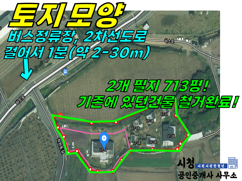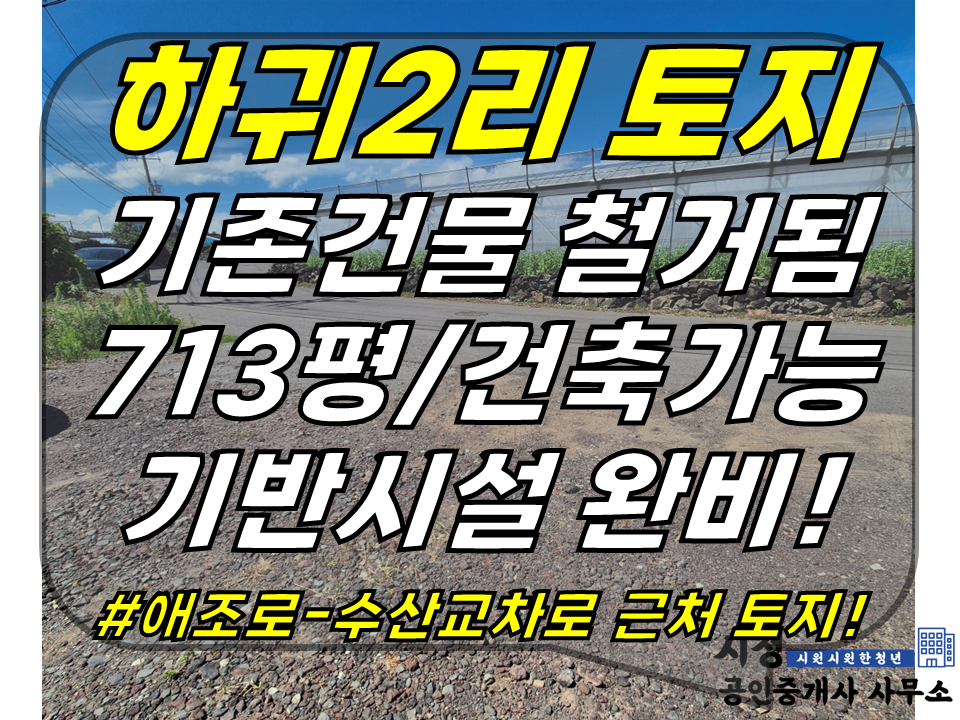 [ 아스콘 도로 접+건축가능한 대지! 애월읍 하귀2리 토지 매매(713펼/2차선도로 1분/기반시설 완비/기존건물 철거완료) ]