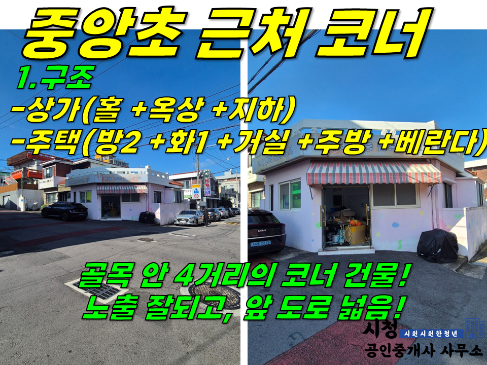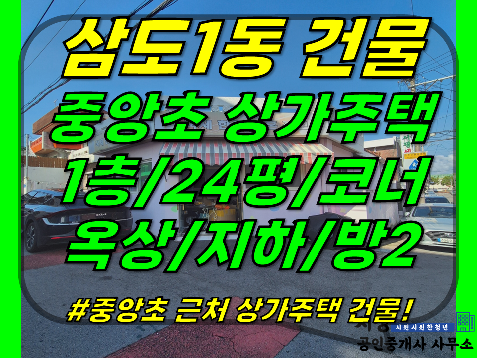 [ 중앙초 근처+4거리 코너 건물! 제주시 삼도1동 상가주택 건물 매매(대지36평-건물24평/옥상/지하실/확장 됨) ]