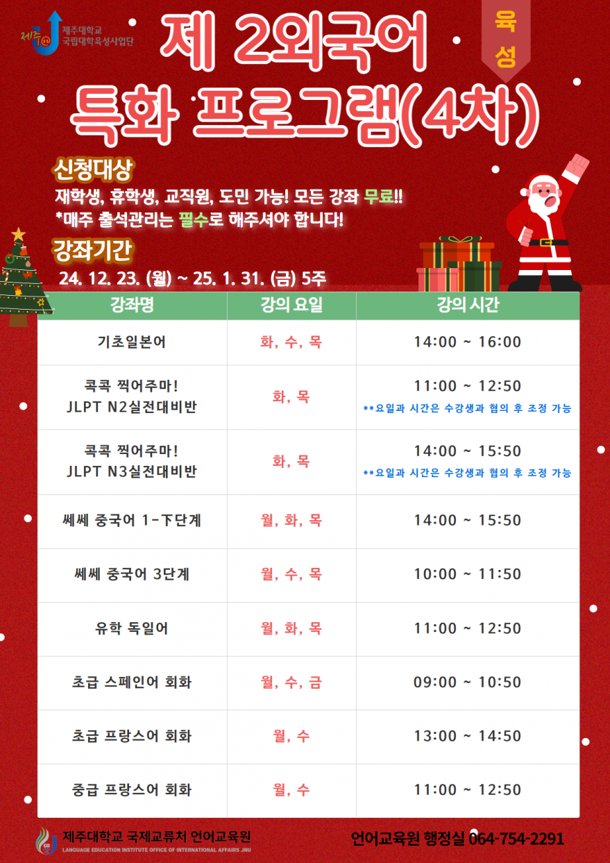 기타 | (제2외국어 강좌 무료, 일반인 및 도민 수강가능!) 제주대학교 언어교육원 어학강좌