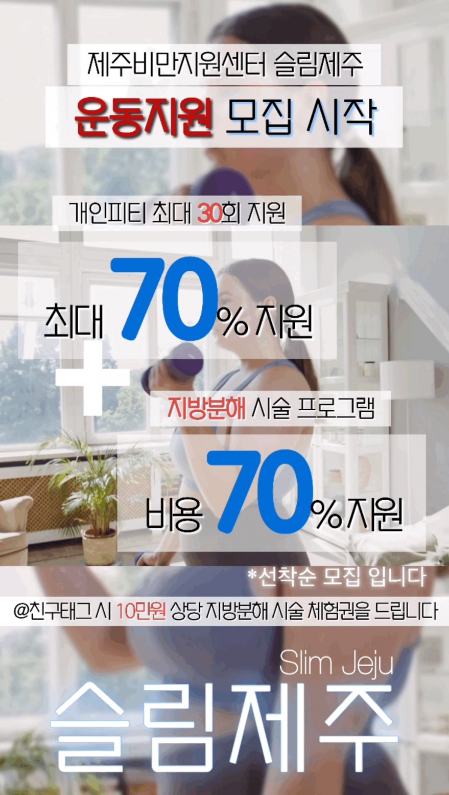 기타 | 제주비만지원센터 슬림제주!! 페이지 정보 작성자 슬OO주 작성일24-09-14 22:22 조회8,189회 연락처 010-8964-7322 관련링크 본문 안녕하세요!슬림제주입니다! 슬림제주에서 운동지원을 시작합니다!자세한 사항은!인스타 slim_jeju로 방문하셔서 모집 공고 쭉~~~읽어보시면 됩니다! 이전글 다음글 목록
