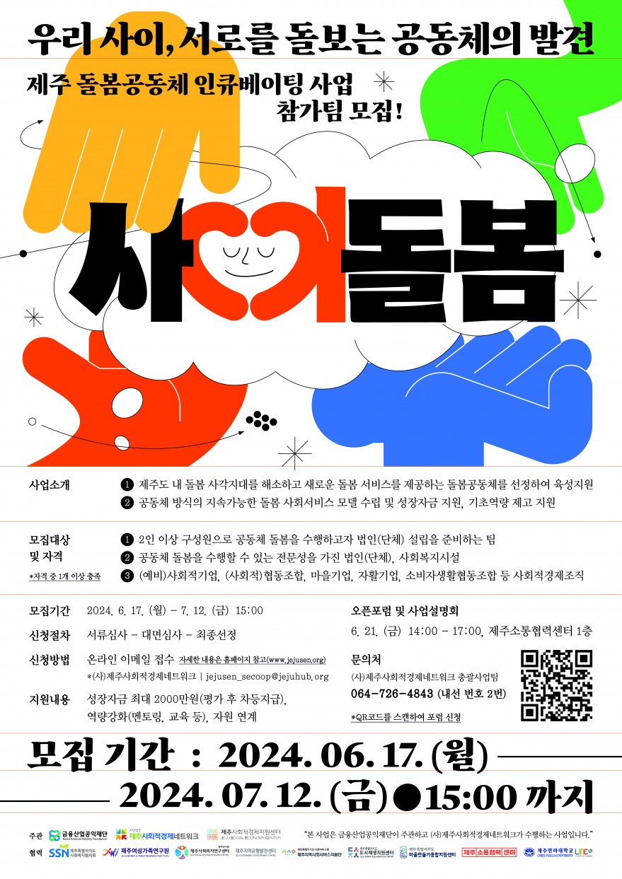 기타 | [지원사업] 제주 돌봄공동체 인큐베이팅 사업 참가팀 모집