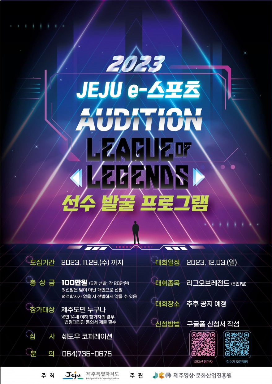 2023년 12월 3일 일요일, 제주 e-스포츠 오디션 선수 발굴 프로그램이 준비되어 있습니다.