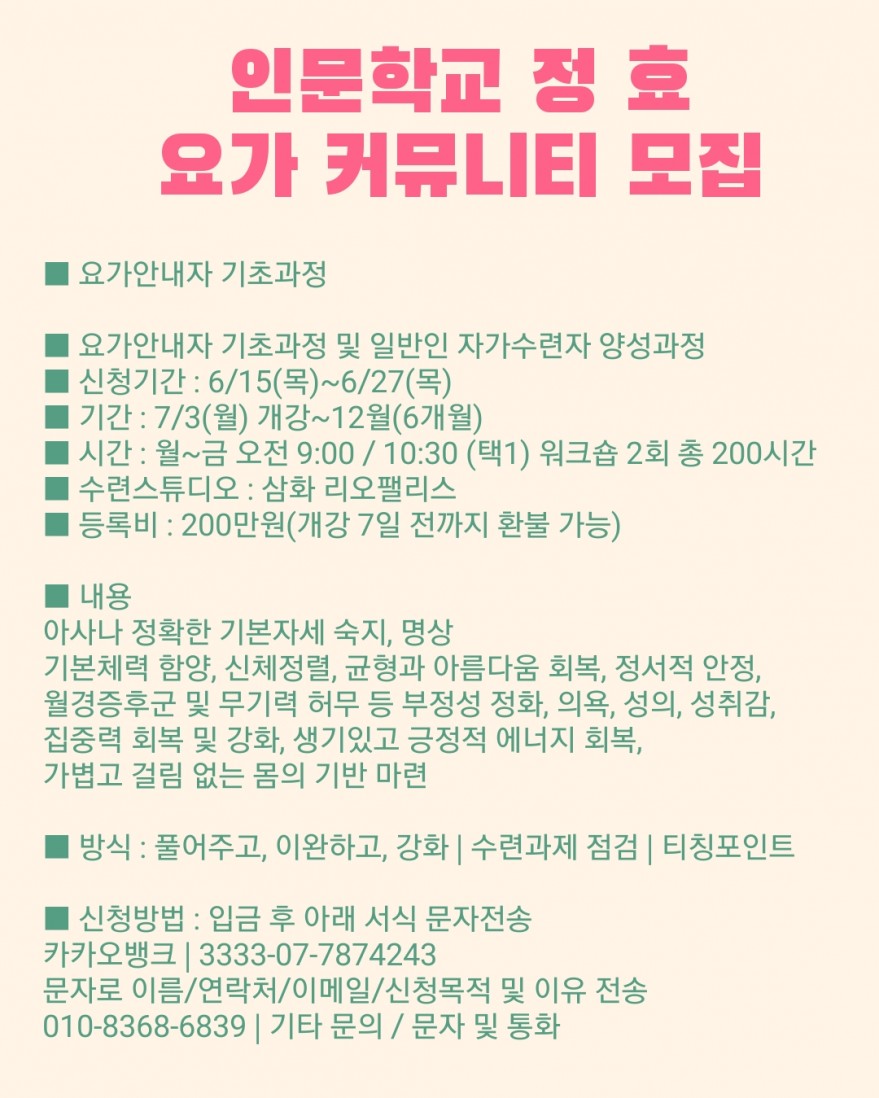 2. 요가안내자 및 요가커뮤니티 기초과정 모집