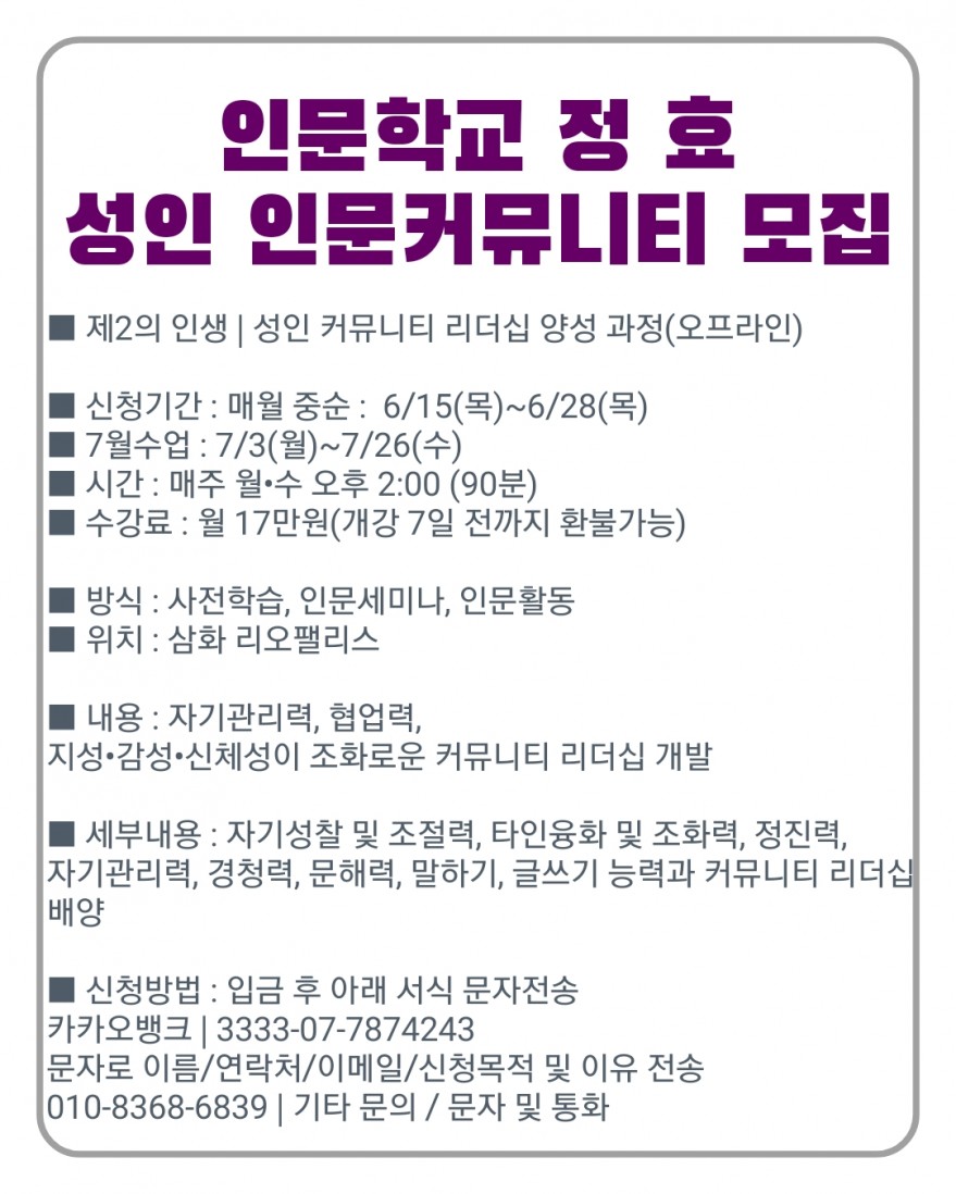 [카카오채널/오픈채팅] 인문학교 정효