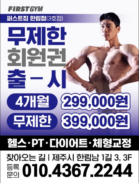 한림헬스장 단 한번 등록으로 무제한 이용! 마지막4명!