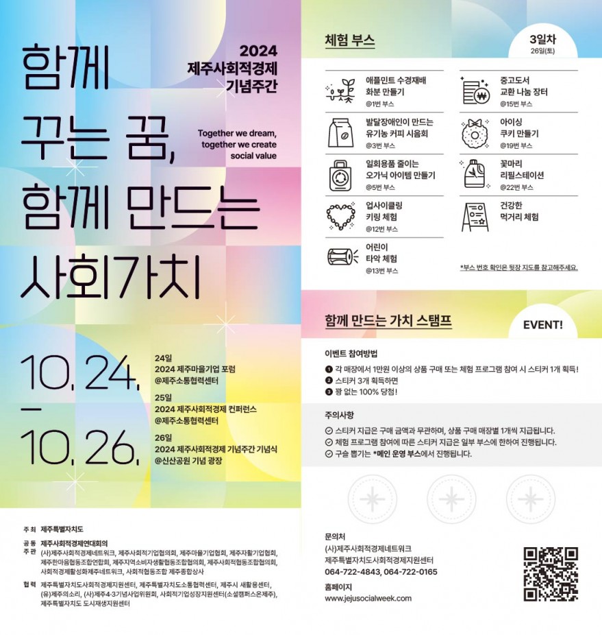 어른부터 아이들까지 모두 즐길 수 있는 다양한 행사와 이벤트가 가득한 [2024 제주사회적경제 기념주간]