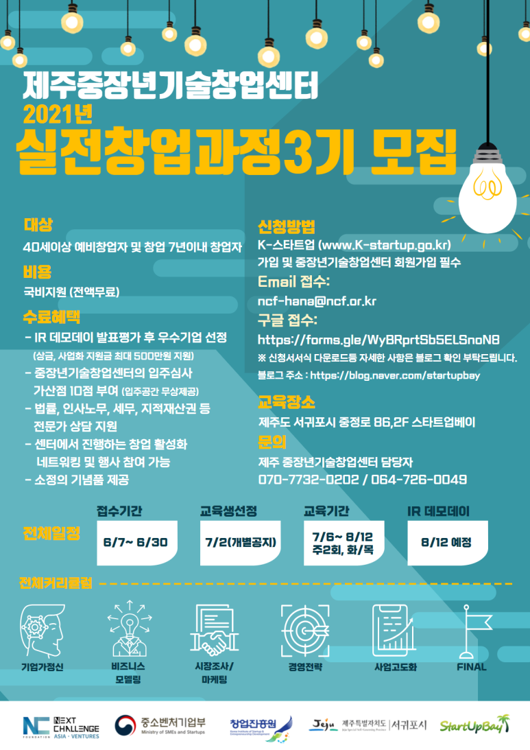 2021년 제주중장년기술창업센터 실전창업과정 3기 모집