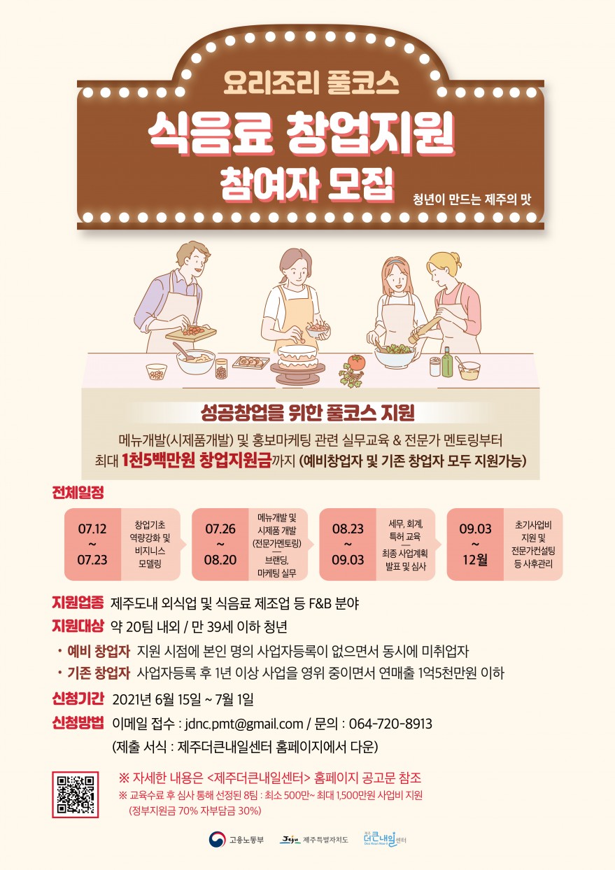 최대 1,500만원 지원하는 외식업 창업자들을 위한 창업지원! 페이지 정보 작성자 더OO일 작성일21-06-15 11:27 조회6,868회 연락처 010-720-8913 관련링크 본문 ☎ 자세한 내용은 홈페이지를 참고하세요- 모집공고 : https://www.jdnc.or.kr/- 문의처 : 064-720-8913 이전글 다음글 목록