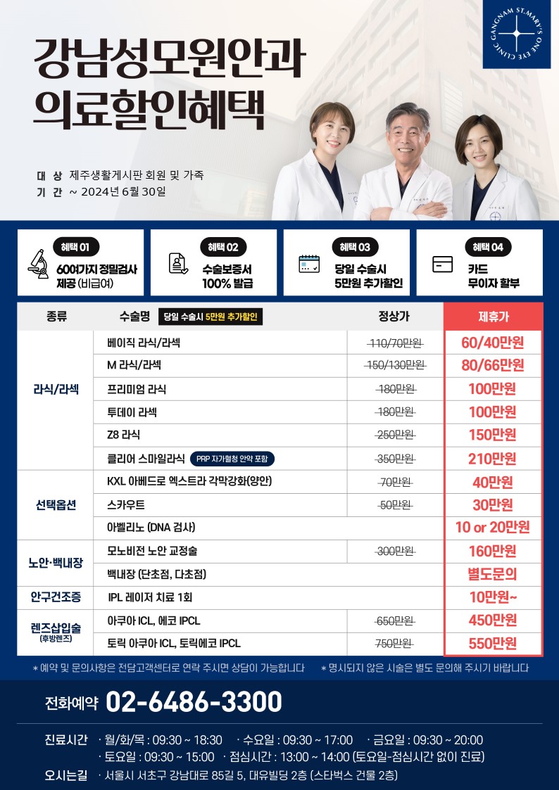 강남성모원안과 우대혜택안내(라식, 라섹, 클리어 스마일라식)