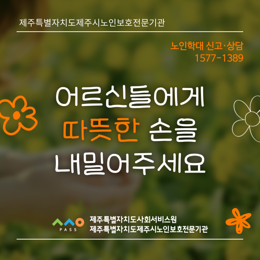 [제주특별자치도제주시노인보호전문기관] 4월 노인학대예방 포스터 페이지 정보 작성자 제OOOOOOOOO관 작성일24-04-02 10:39 조회5,432회 연락처 010-4690-1589 관련링크 본문 안녕하세요 제주시노인보호전문기관입니다~✨✨벚꽃도 만개하고 완연한 봄 날씨가 찾아왔어요날씨 만큼이나 아름다운 여러분의 따뜻한 마음을 어르신들에게 나누어주세요.더불어 학대피해노인을 위한 해피빈 모금함 기한이 얼마 남지 않음을 알려드립니다 QR코드를 통해 접속하실 수 있어요.https://happybean.naver.com/donations/H000000193754#제주특별자치도제주시노인보호전문기관#노인보호전문기관 #제주 #제주시#노인학대예방 #노인학대신고 #15771389#해피빈 #기부 #모금함 #어르신 #정기기부 이전글 다음글 목록