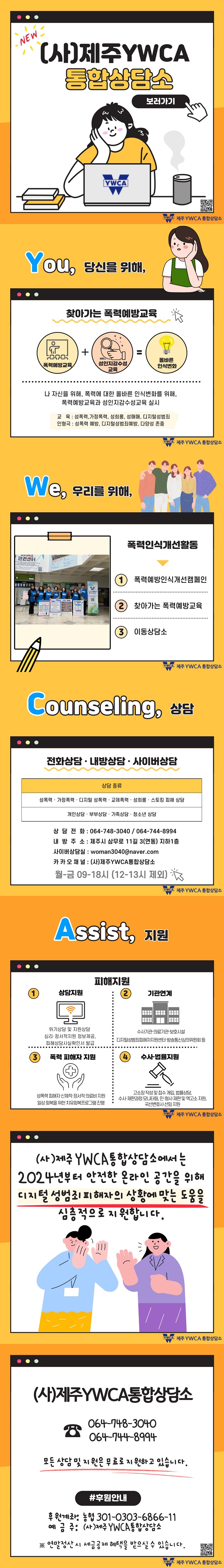 안녕하세요 (사)제주YWCA통합상담소입니다!